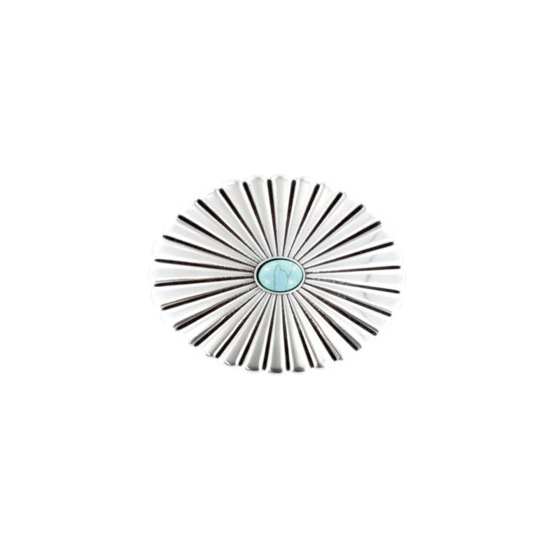 Boucle ovale finition argent. Une pierre centrale naturelle turquoise vient sublimer l'ensemble. Une touche d'originalité tout en subtilité.